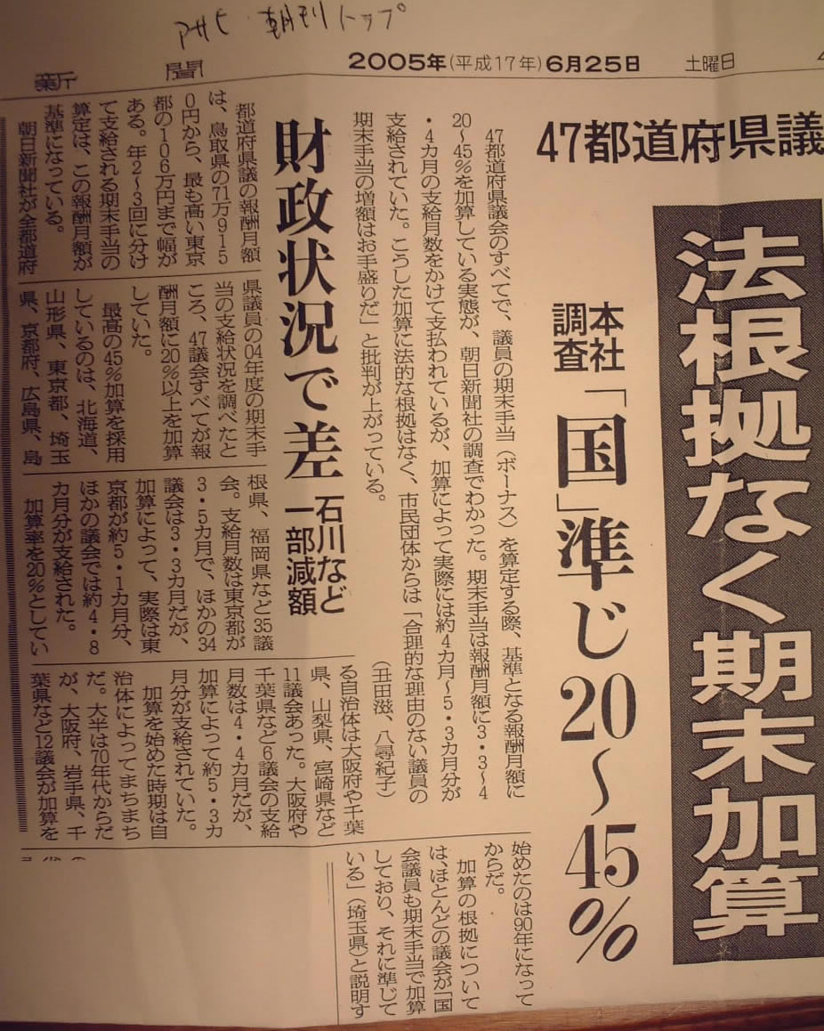 議員の期末手当20%加算問題について〜関連ページ一覧(HP内)です。