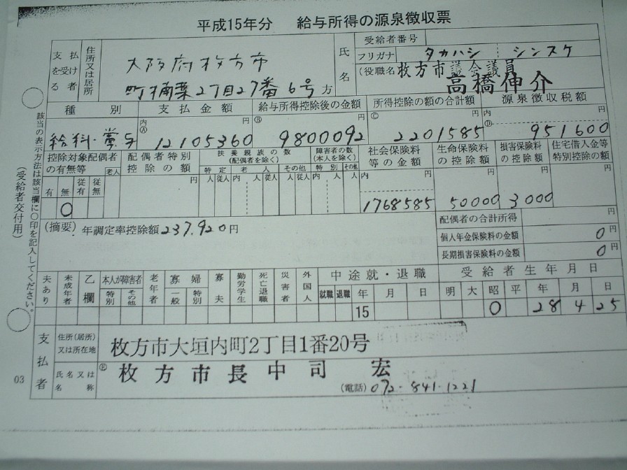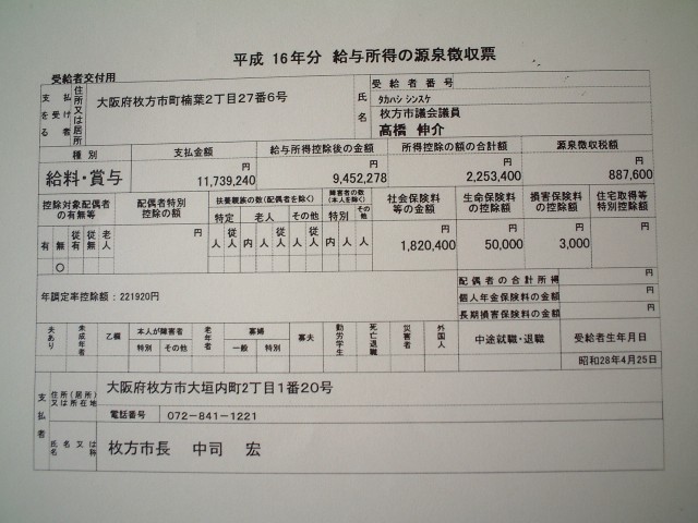 | 私の議員報酬としての総所得。手取りは約840万円でした。ガンバリマス。 |