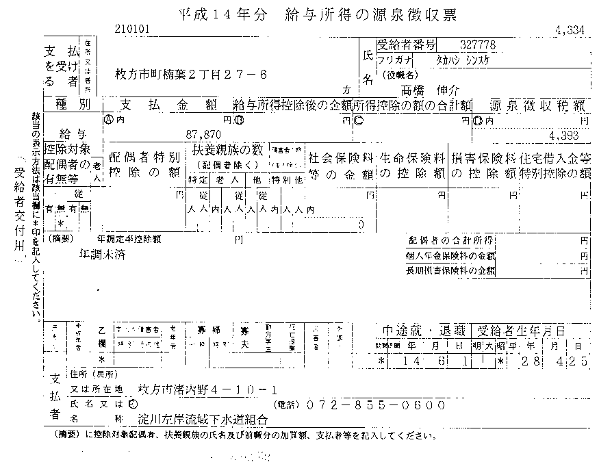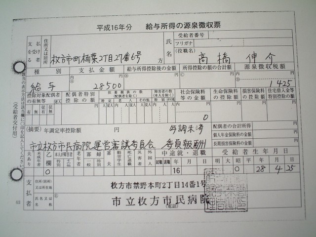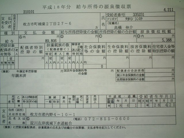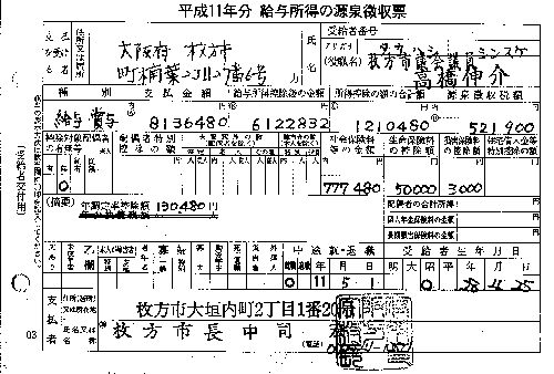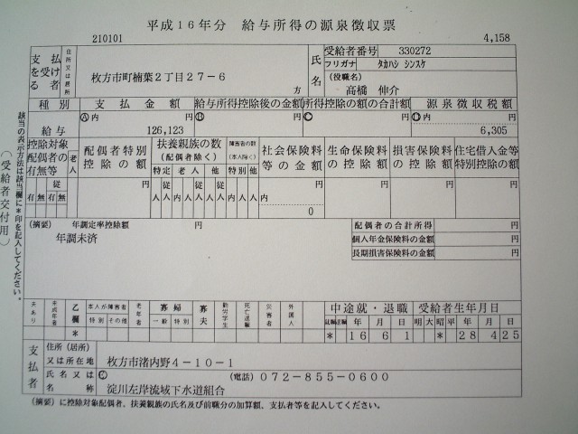 私の総所得 〜 源泉徴収票の画像 クリックで拡大します。