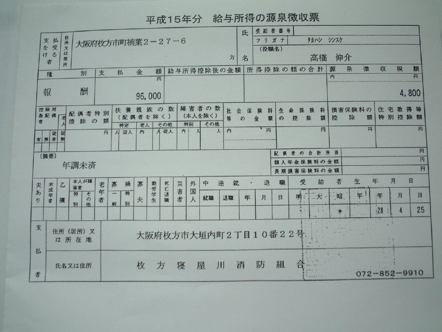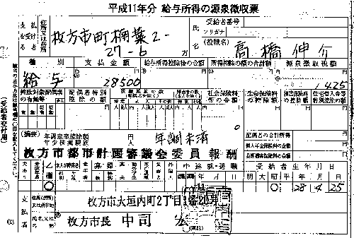 | HOME≫データバンク≫源泉徴収表 |