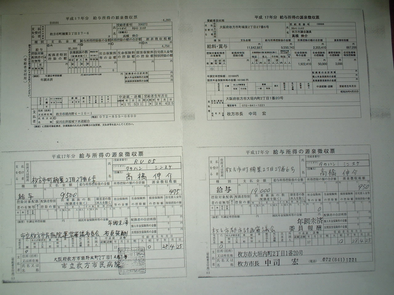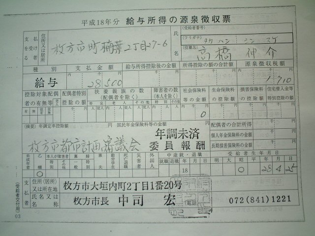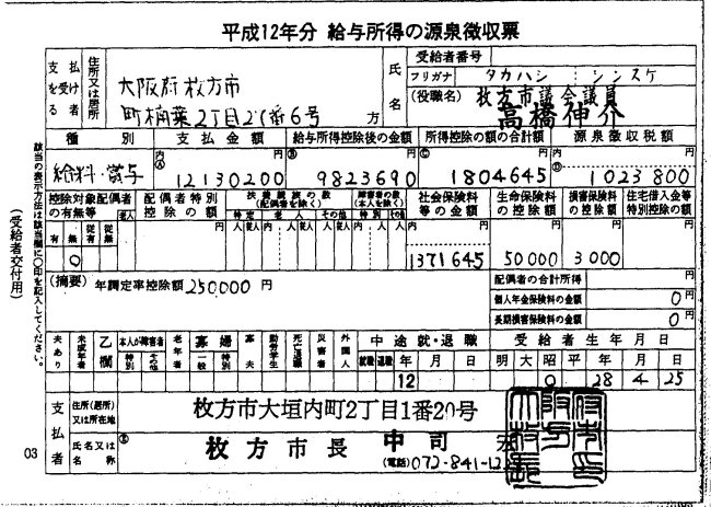 | 左から年収、淀川左岸流域下水道組合分(派遣議員報酬)、枚方市都市計画審議会(委員報酬) | |||||||||||||||||||