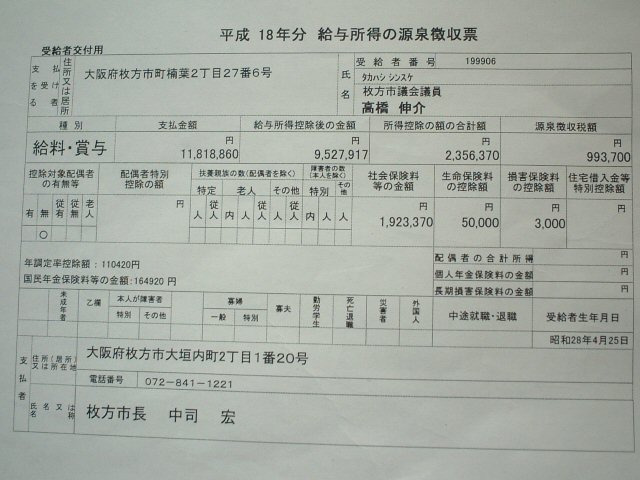 | 私の議員報酬としての総所得。手取りは約840万円でした。ガンバリマス。 |