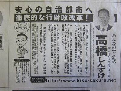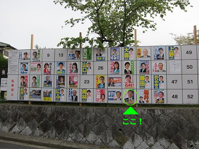 | 今回の選挙公報です。↓ ポスターはチョット見にくい位置に↑ | ||